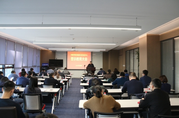 黨委副書記、紀委書記王志偉傳達中科院警示教育大會精神,通報相關(guān)違紀違法典型案例,提出黨風廉政建設(shè)和反腐敗工作依然任重道遠,要以案為鑒、警鐘長鳴,深刻反思,切實加強紀律規(guī)矩意識,堅守底線思維,筑牢防線、不越紅線,強化責任擔當,嚴格落實“一崗雙責”,切實履行從嚴治黨主體責任。