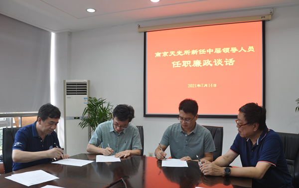 7月14日,中國科學院國家天文臺南京天文光學技術(shù)研究所組織新任中層領導人員開展集體任職廉政談話。談話強調(diào),廉政談話立足于教育、著眼于防范,體現(xiàn)了對新任中層領導人員在政治上、思想上、工作上的關心和愛護。